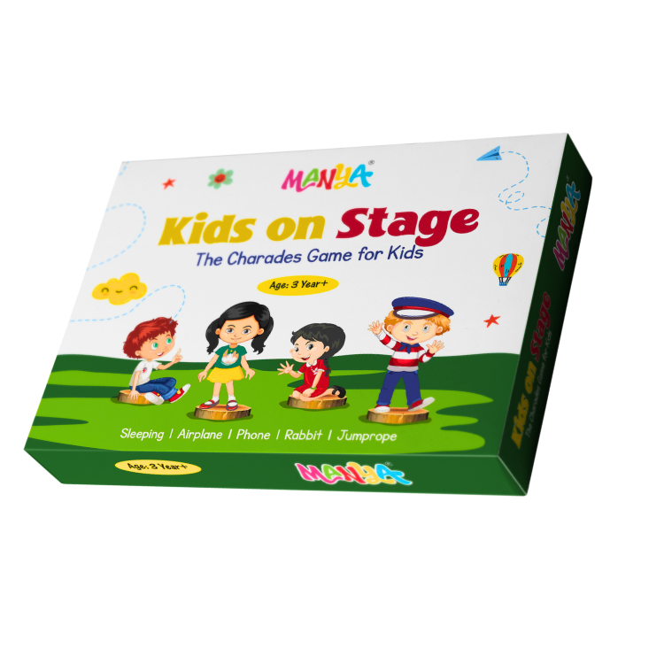 Kids on Stage by Manya is a delightful charades game designed specifically for children aged 3 years and above. This game encourages kids to express themselves through actions and imagination, making it perfect for playdates, classrooms, or family game nights. Each turn lets children act out various prompts like “Sleeping,” “Airplane,” “Rabbit,” and more, helping them build confidence, communication skills, and motor coordination. With colorful illustrations and child-friendly themes, this game offers endless fun while supporting early childhood development.